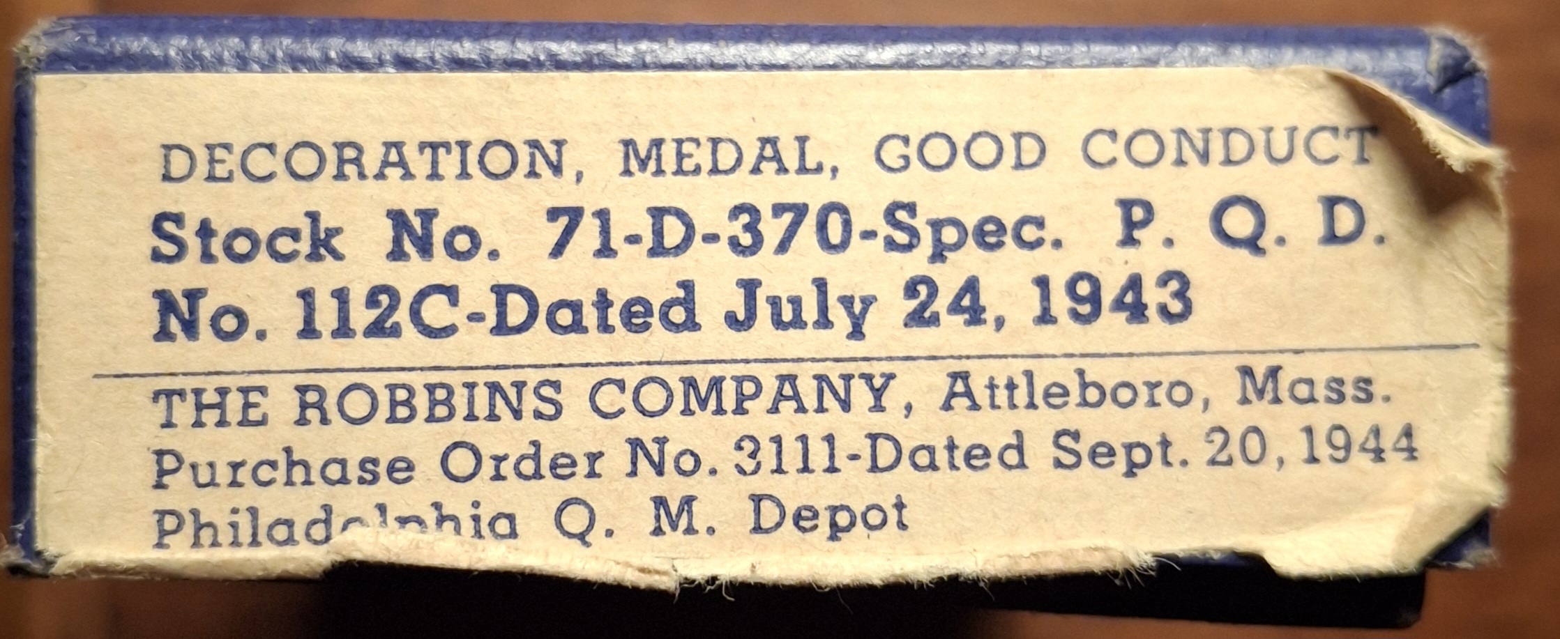 Established by executive order 8809 June 28th 1941 for efficiency, fidelity and good behaviour whilst serving as an enlisted grade on military duty. The US Army good conduct medal was awarded for 3 years completed service from 27th August 1940. After Pearl Harbor 7th December 1941 the medal was awarded for 1 years service during wartime duty then reverted back to 3 years post war. One of the original manufacturers of this medal was the Medallic Arts Co, N Y. The first stampings were numbered from 1 – 38000 on a full wrap brooch.