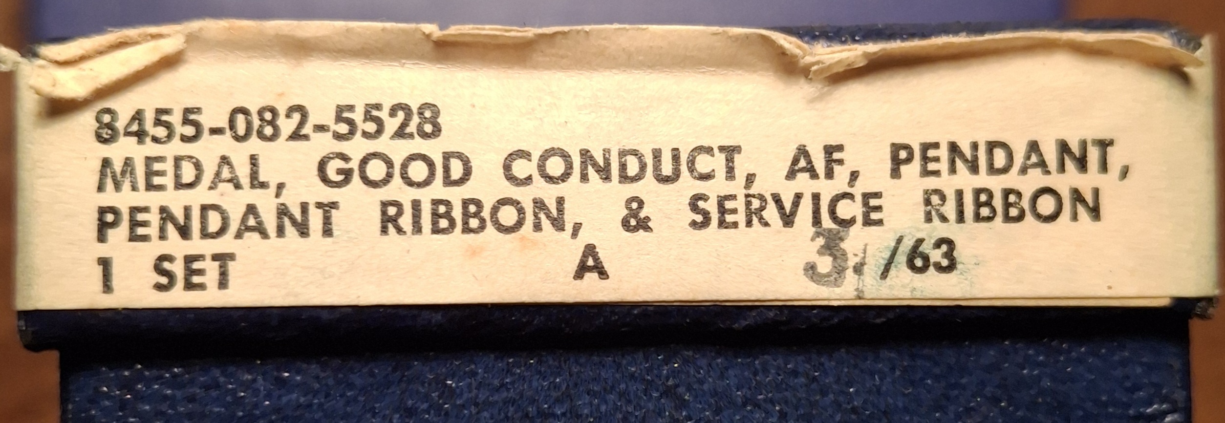 From its inception in 1947 the United States Airforce issued Army medals including the good conduct medal up until the early sixties when new distinct medals were issued for air force service. The air force GC medal although maintaining its original design was issued with a new ribbon colour. Early issues had the slot loop suspender.